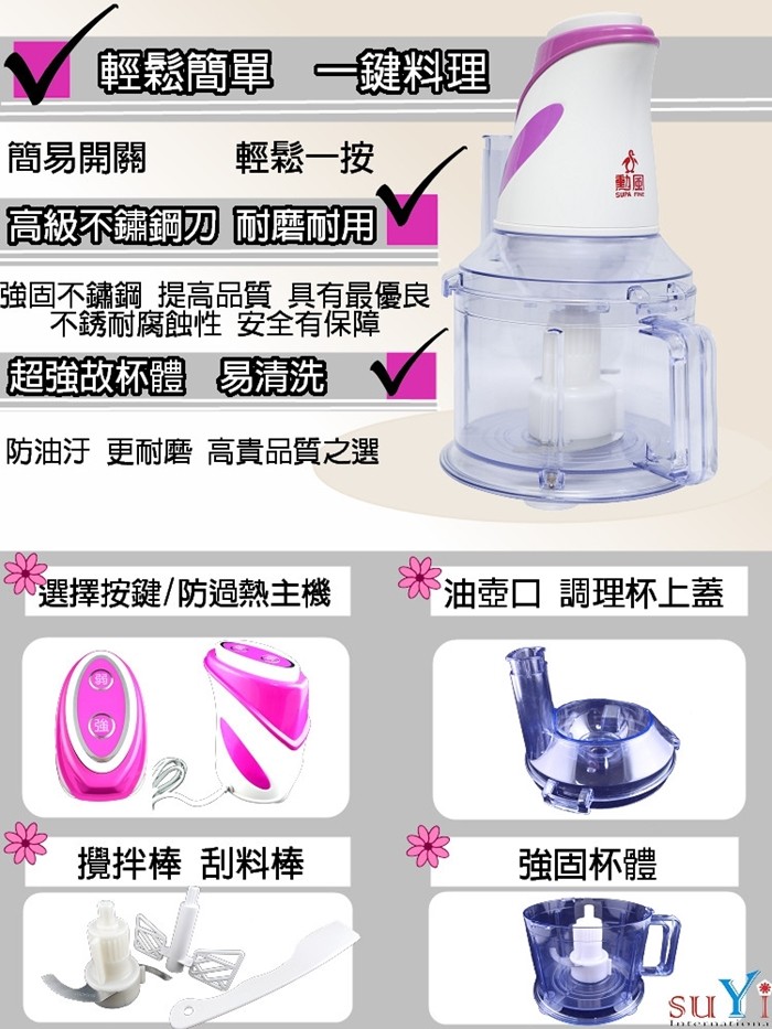 勳風全功能好幫手料理機-34數量有限,售完為止!限量是殘酷的,不要猶豫入手要快~勳風全功能好幫手料理機-34 等好久終於開賣了超讚的啦!最近我也在找勳風全功能好幫手料理機-34的相關資訊~PAMELA也請我幫忙收集該商品資料!PAMELA不吝嗇分享他的生活點點滴滴;包括網路上購買的任何東西.