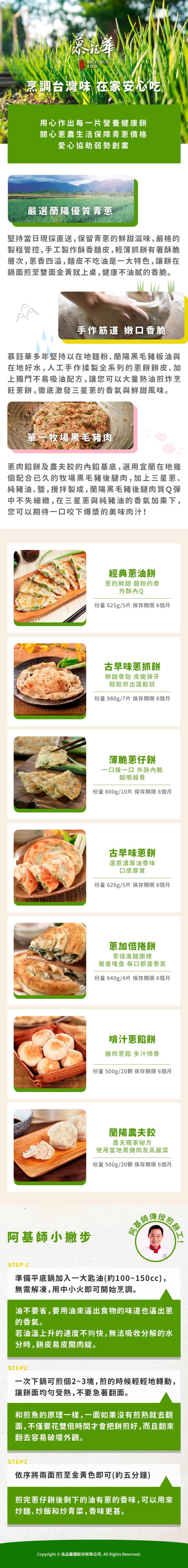 康熙來了小S熱情推薦 阿基師親授美味煎法 嚴選當日現採宜蘭三星蔥 商品名稱 慕鈺華 三星蔥抓餅x2包 7片 包 品牌 慕鈺華 商品種類 蔥抓餅 內容量 g ml 約130g 片 7片 售價:400