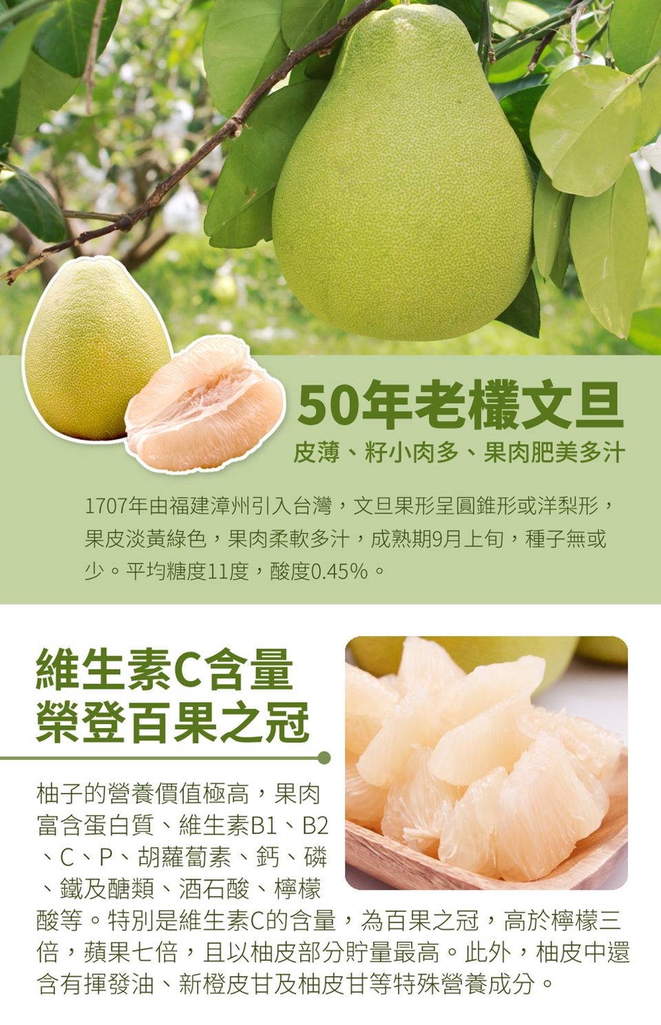 50年老欉文旦 栽種過程加入60幾種微量元素 皮薄、籽小肉多、果肉肥美多汁 中秋佳節送禮自用的最佳選擇