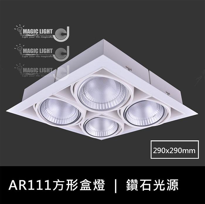 【光的魔法師 Magic Light】白色AR111方形無邊框盒燈 四燈 (含散光大角度燈泡)